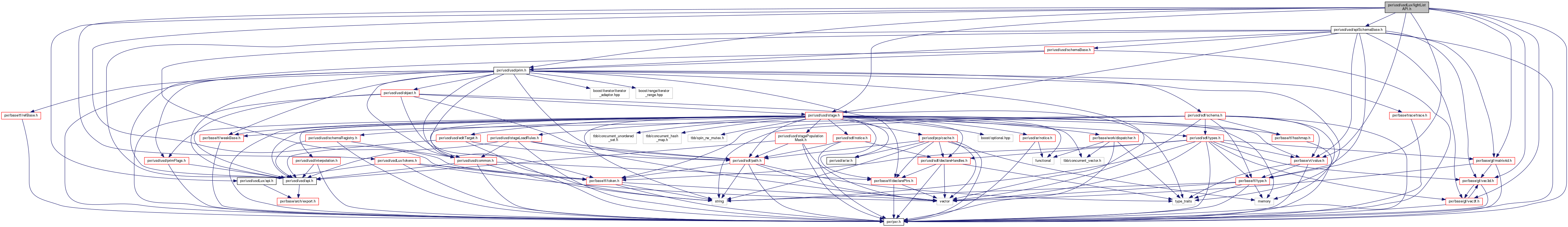 Include dependency graph for lightListAPI.h: