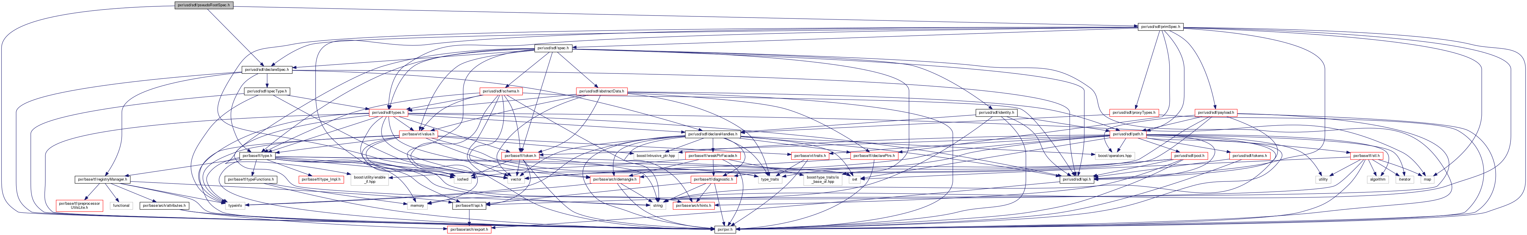 Include dependency graph for pseudoRootSpec.h: