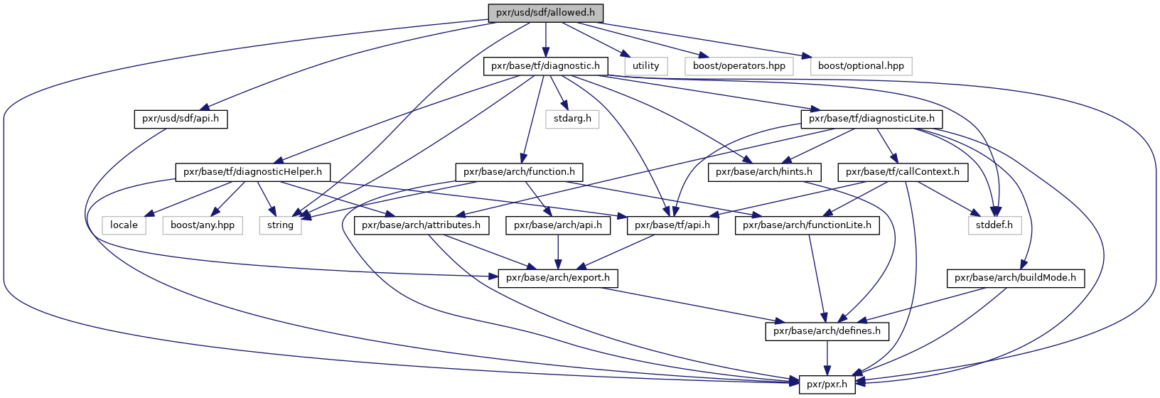 Include dependency graph for allowed.h: