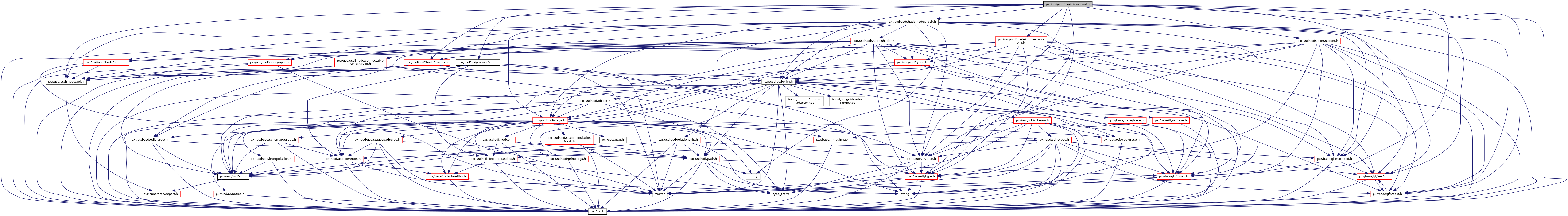 + Include dependency graph for material.h: