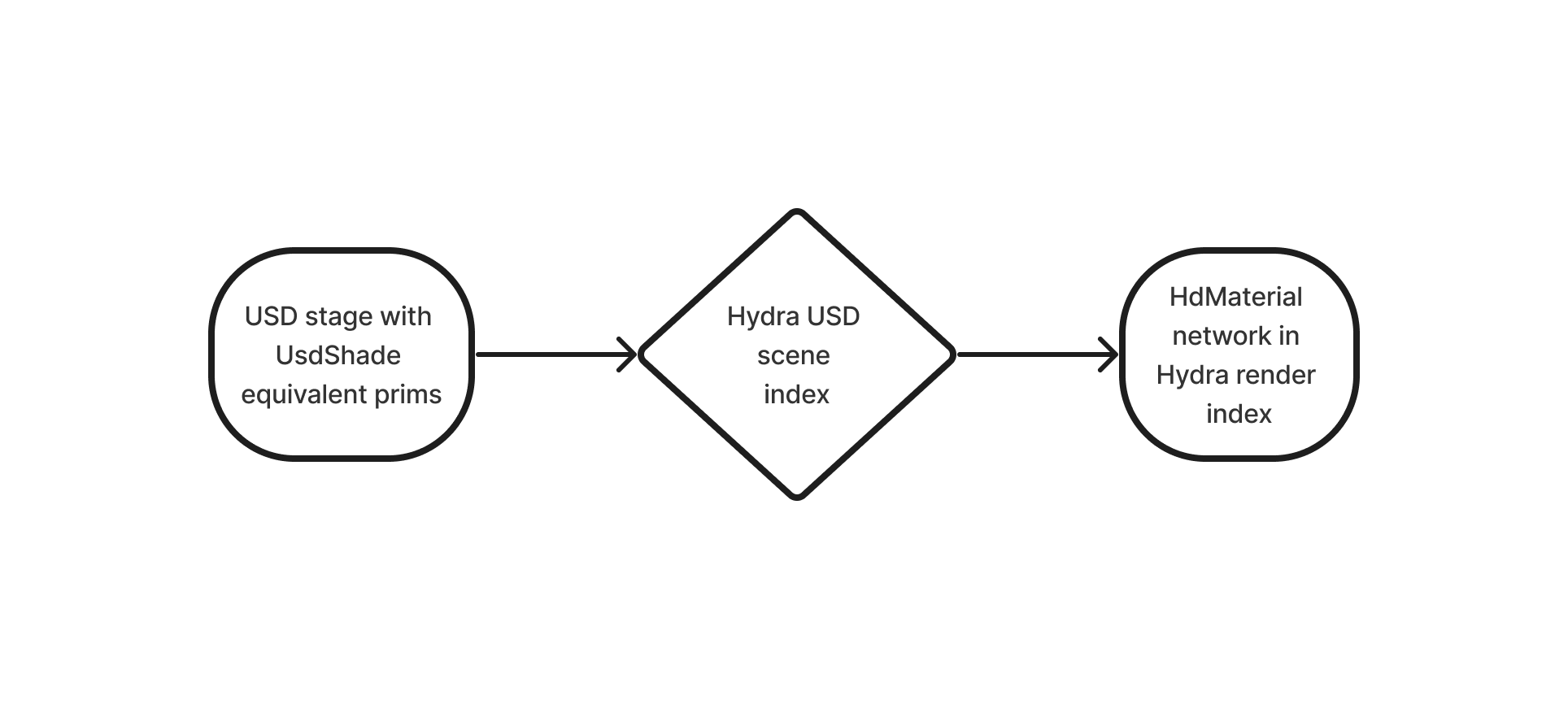 Once the USD scene is composed, and MaterialX nodes are converted to USD prims, Hydra will process the USD scene (via the usdImaging USD scene index) and create Hydra prims and prim datasources to populate the Hydra render index. This process is part of Hydra's regular render index population – USD prims created from MaterialX nodes are processed like any other USD prim used to populate the render index.