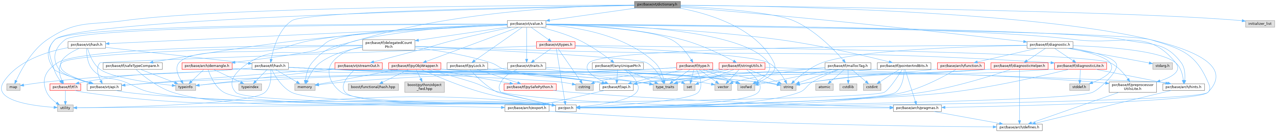 Include dependency graph for dictionary.h: