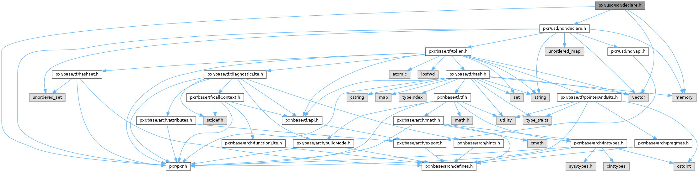 Include dependency graph for declare.h: