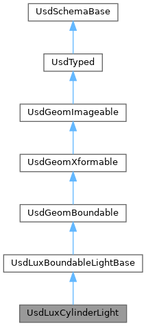Inheritance diagram for UsdLuxCylinderLight:Public Member Functions | |