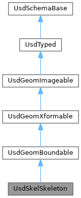 Inheritance diagram for UsdSkelSkeleton:Public Member Functions | |
