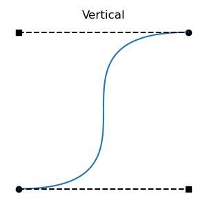 If both tangents alight exactly at the opposite knot, we get a single vertical, the limit of non-regression. (Throughout this document, we use "vertical" in the sense of "when graphed with time on the horizontal axis".)