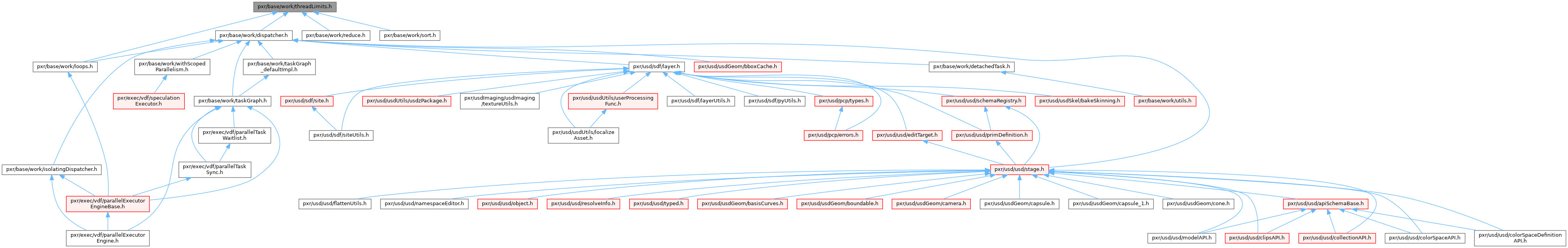 Include dependency graph for threadLimits.h: