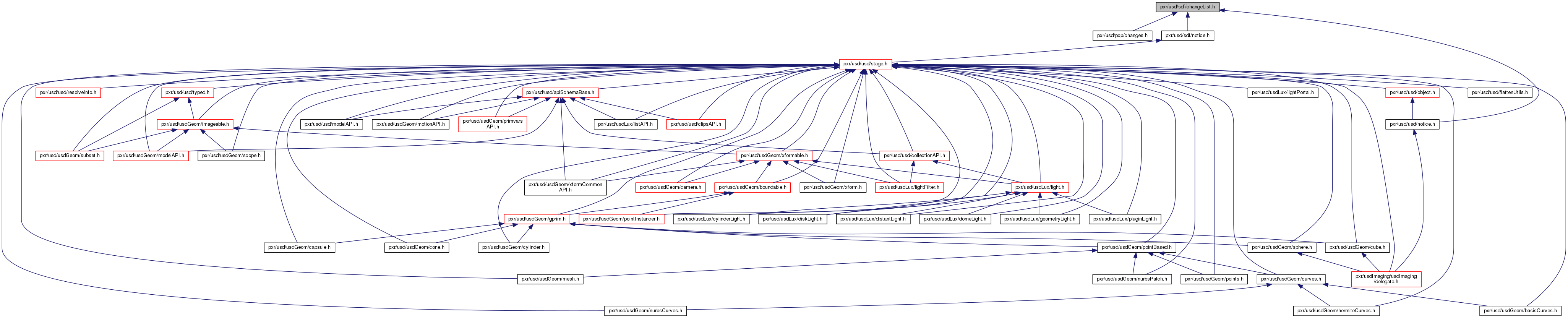 Include dependency graph for changeList.h: