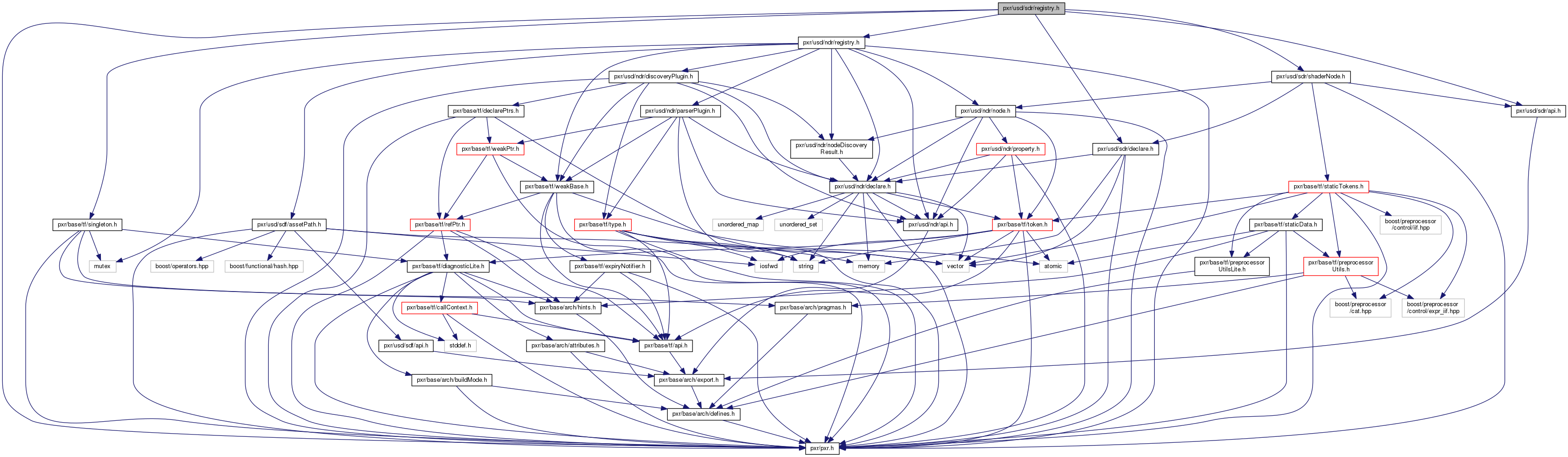 Include dependency graph for registry.h: