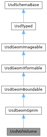 Inheritance diagram for UsdVolVolume:Public Member Functions | |