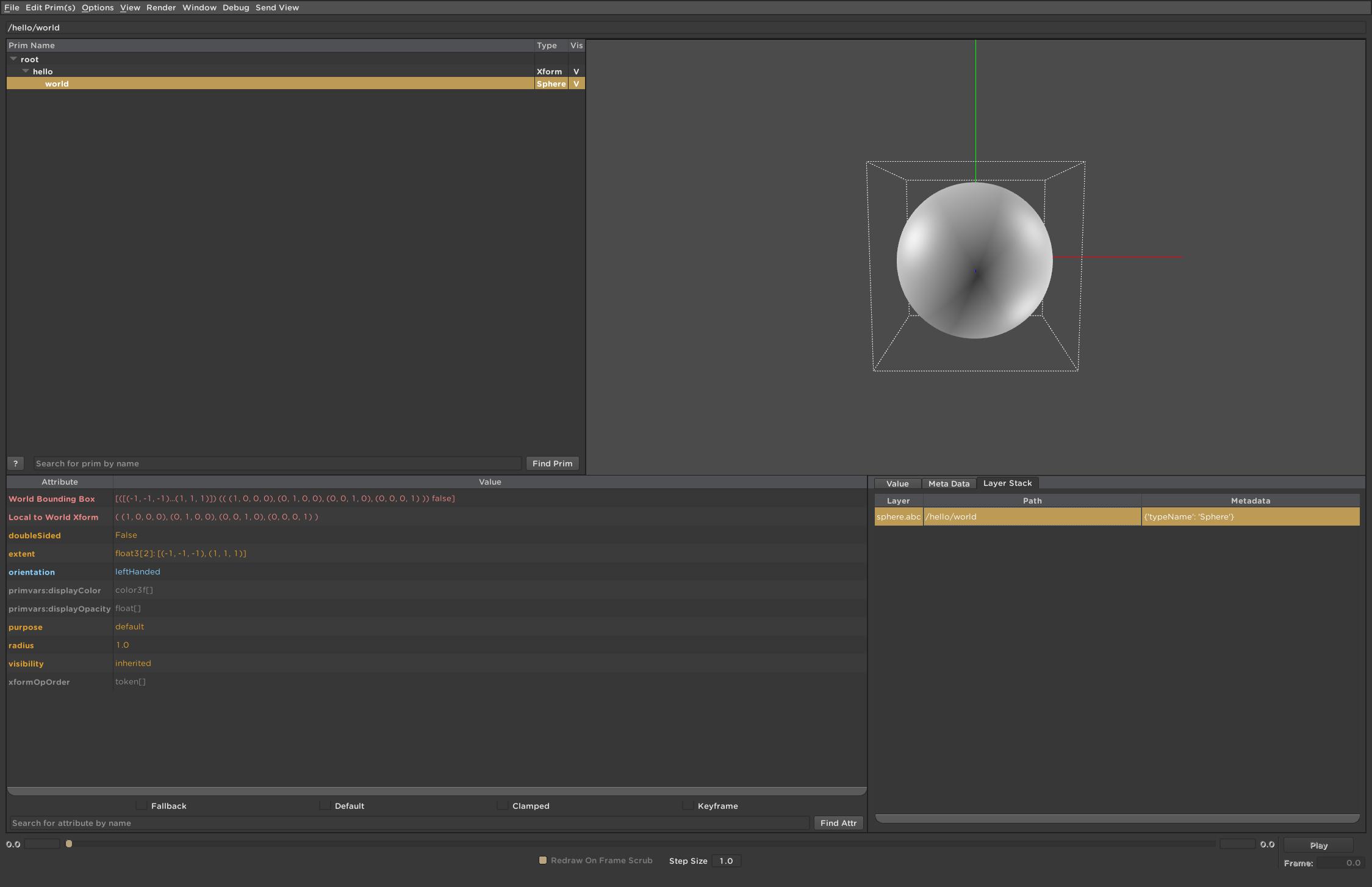 Let’s start by creating a simple USD file (save it as hello.usda):