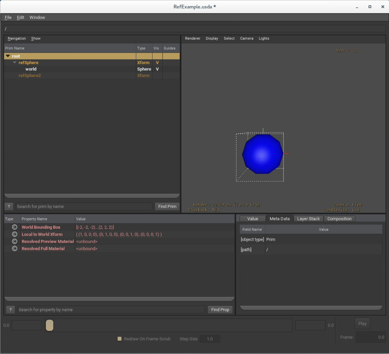 >>> [x for x in usdviewApi.stage.Traverse()] [Usd.Prim(</refSphere>), Usd.Prim(</refSphere/world>)]